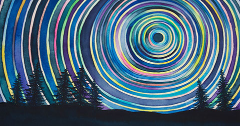 Working cyclically, Geoffrey Thulin revisits different, yet recurring approaches (abstraction, landscape, animal imagery) in his artwork, exploring rhythm, pattern and color, and their connection to the spiritual aspect of nature.  Energy is the overarching theme, playing across the surface, while pulsing from within.