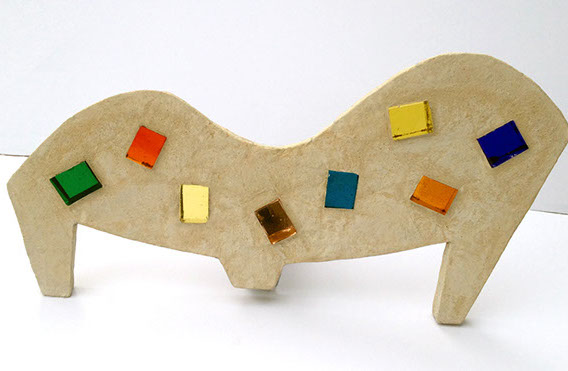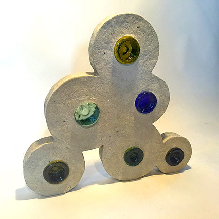 Sharon Pierce McCullough is a self taught artist and sculptor. She works from her historic stone home in Cashtown. Her use of vivid colors has always been one of the most striking aspects of her work, with geometrics being the most repetitive theme.  An underlying thread of “fun” has always permeated her works.